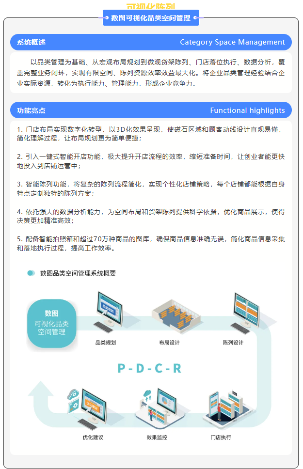 在商品陈列的空间管理领域,不仅要考虑整体的空间陈列,也要对每个商品的空间陈列位置,陈列面位等进行分析和管理。